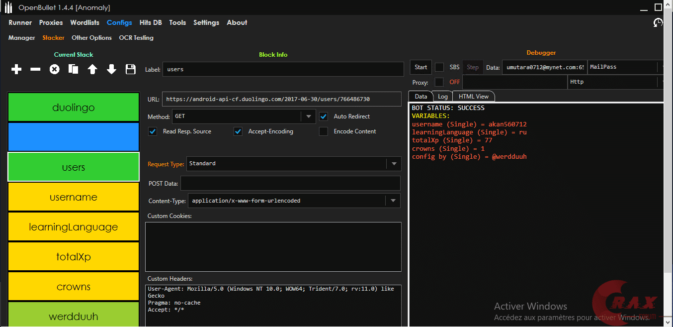 Website https://duolingo.com Bullet Software Open Bullet CPM => +1000 with free proxys Preview: <------------------------------------------------> LEAVE A LIKE FOR SUPPORT <------------------------------------------------> Click to read more... Combo Type Email:Pass Proxy Free Proxies Capture Yes duolingo.PNG 53.9 KB · Views: 116 Reactions: stofax