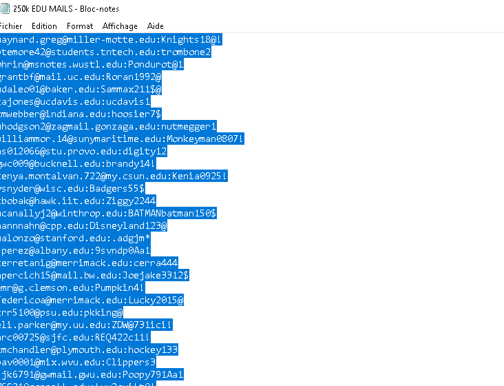 Mail:Access 250K EDU MAIL COMBOPASS UHQ VALID (1 Viewer)