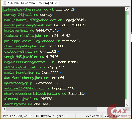 Mixed Combolist of various domains/countries.