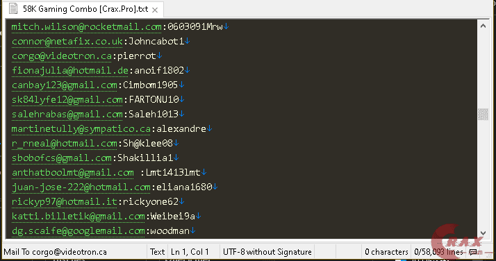 Login:Pass 58K Gaming Email:Pass Combo (1 Viewer)