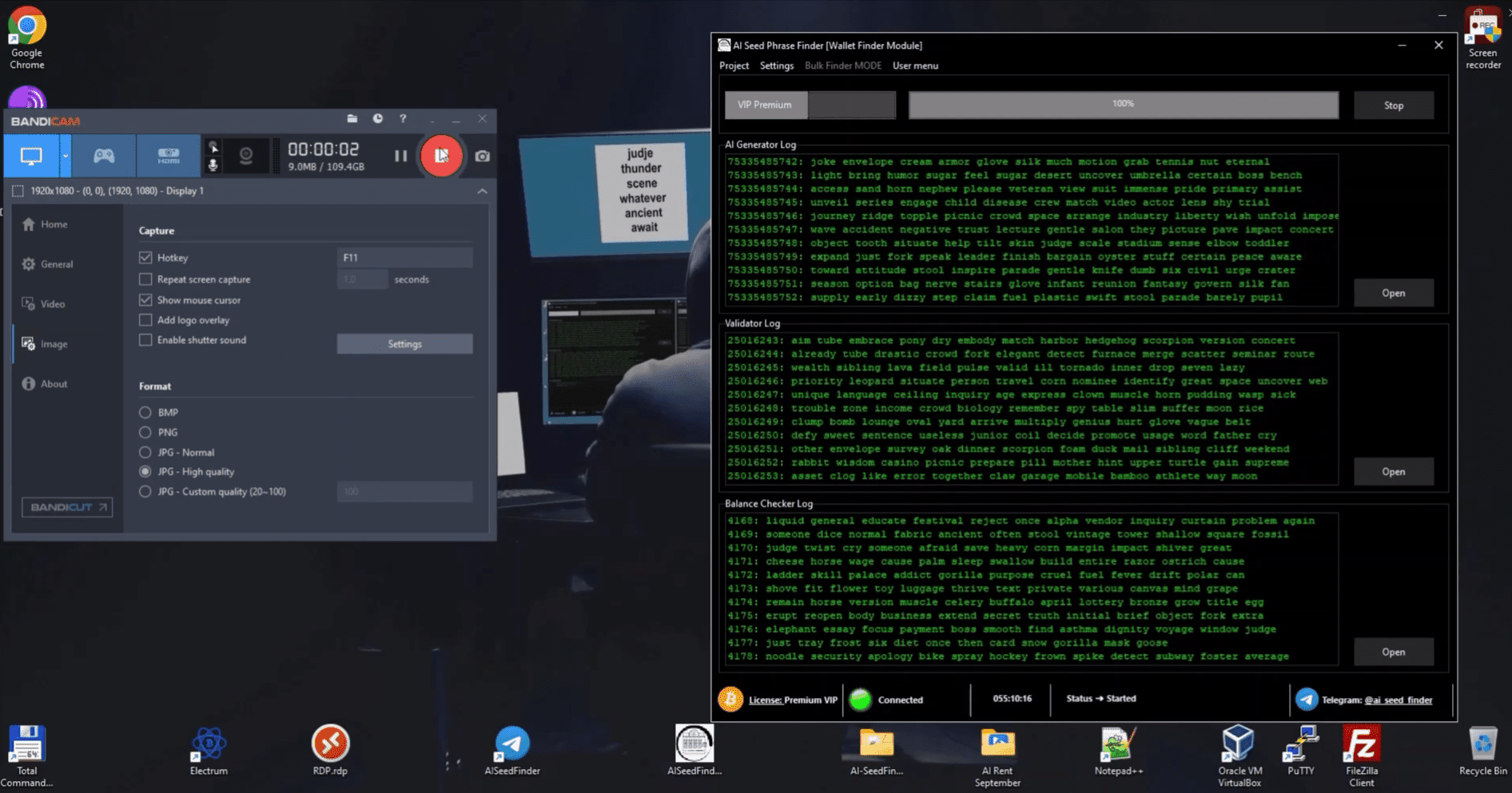 Bitcoin wallets at incredible speed. The program filters empty wallets and saves seed phrases in a text file only for those wallets that have a