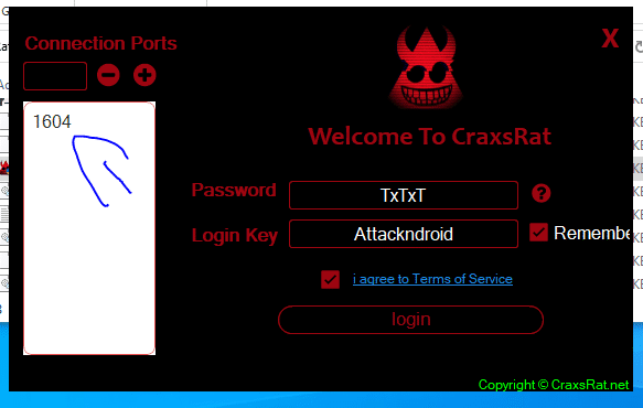We open our program, add our port and click login.