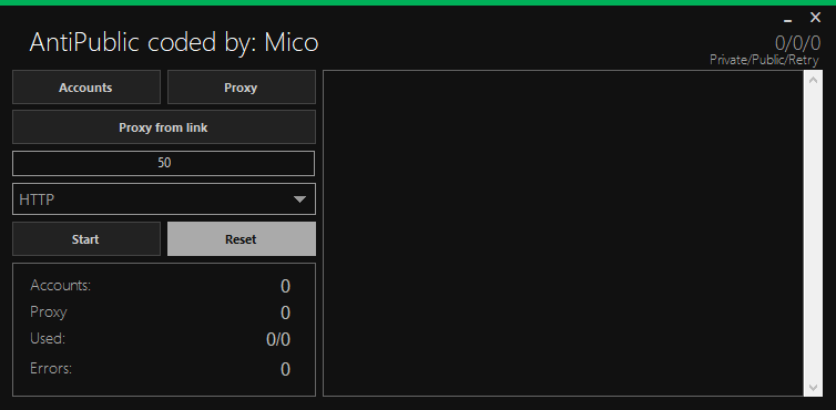 AntiPublic v2.0, coded by Mico, is a high-performance combo list and proxy checker tool built for users who need to validate large datasets of credentials. Featuring support for HTTP/SOCKS proxies, the tool efficiently filters public vs private hits and gives a clean breakdown of used, working, and error entries.