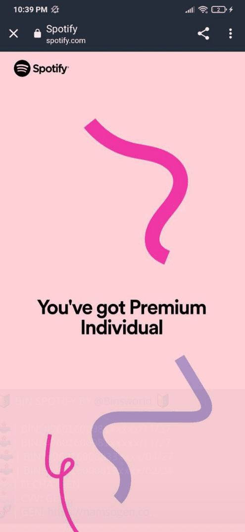 Login:Pass BIN SPOTIFY BY @Binsworld WITH PROVES (1 Viewer)