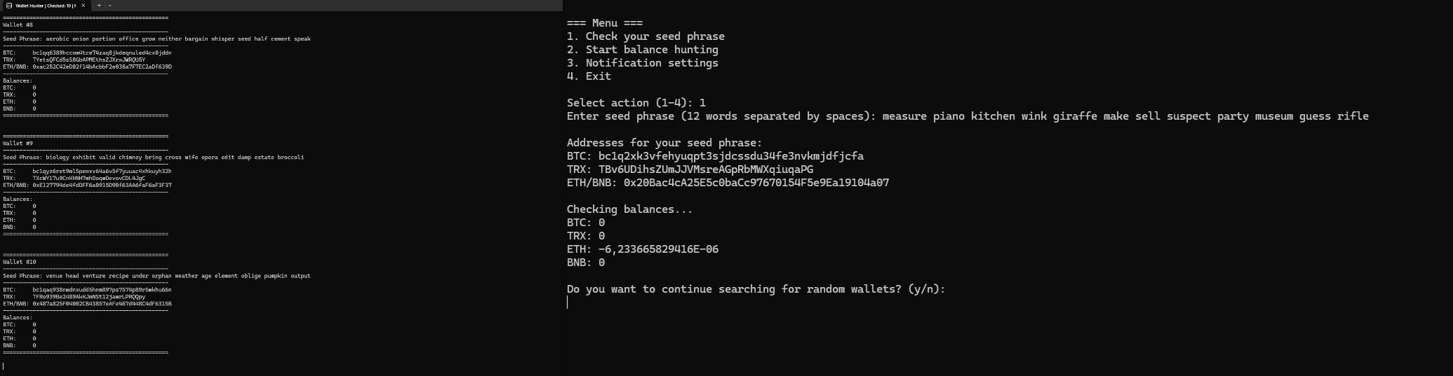 Logging of found wallets