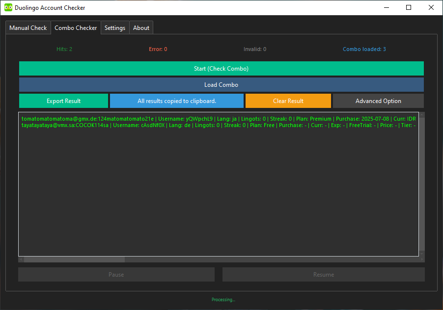 A powerful and user-friendly tool to check the validity and details of Duolingo accounts in bulk. Designed for speed, flexibility, and ease of use.