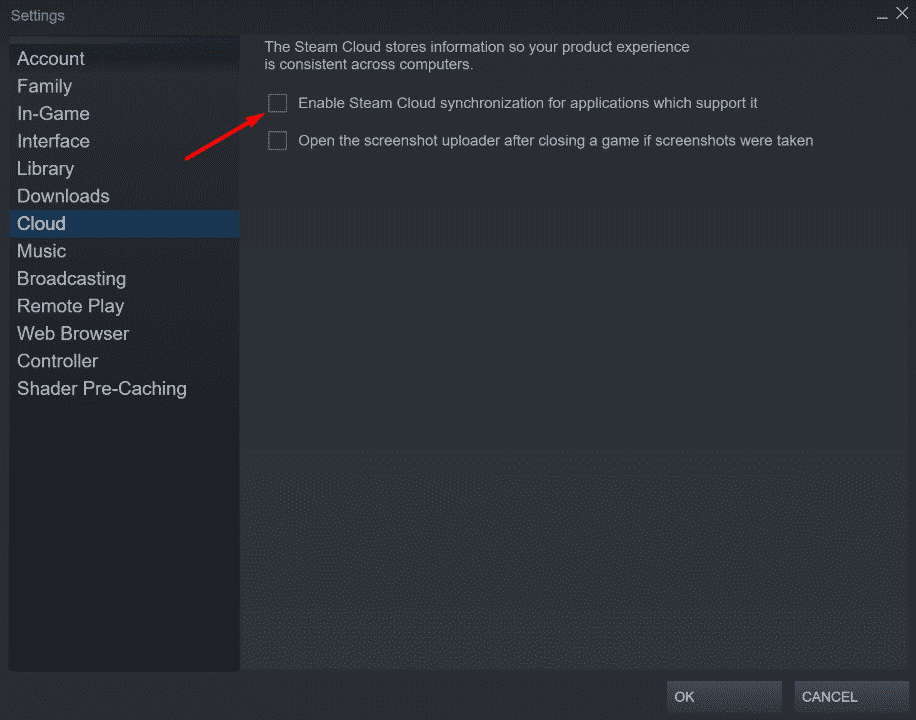 1. Disable steam cloud (to keep your save) here is how :From the Steam client Settings window, navigate to the Cloud tab. Disable "Enable Steam Cloud synchronization…" using the toggle next to.