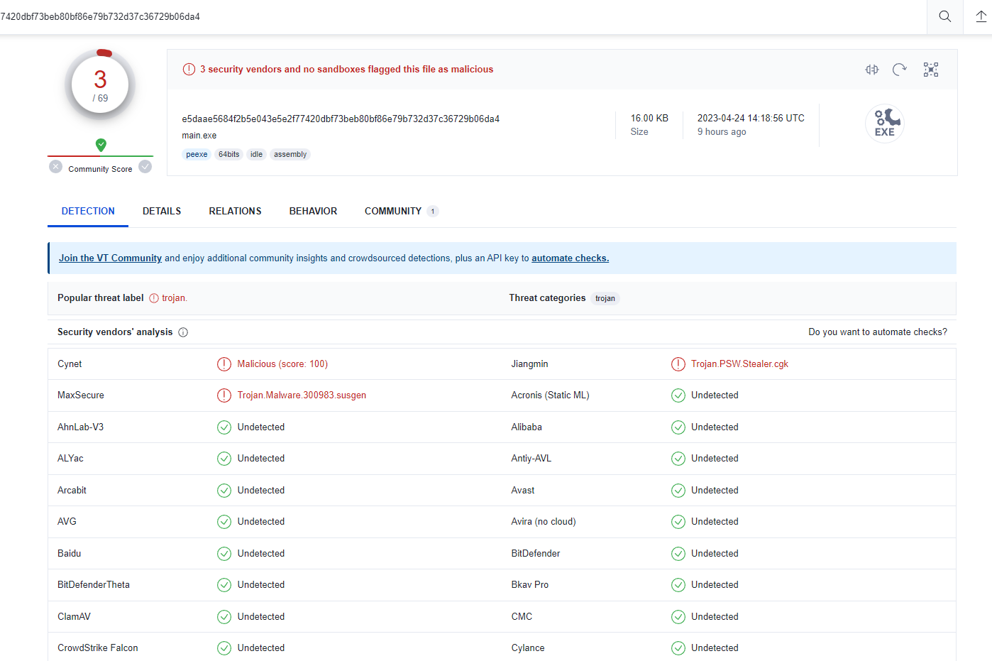 PRO vs DEMO version (Virustotal)