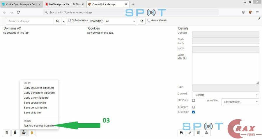 -After That Click on "Restore cookies from file"