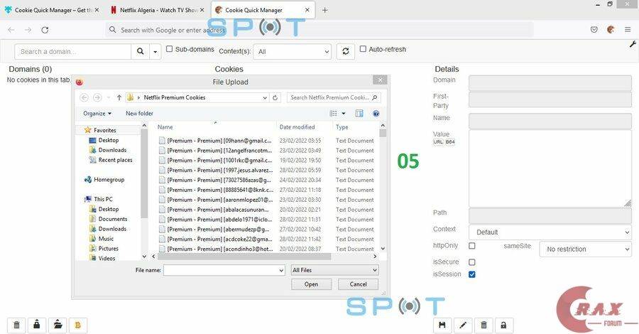 -Now Choose Your Netflix Cookie file, After Save it like in the Photo