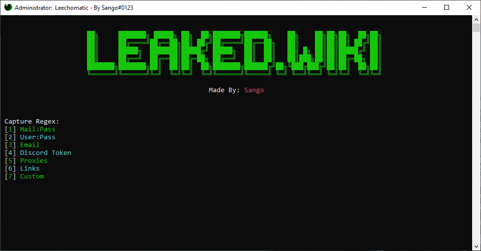 Leechomatic v2 by Sango is a powerful and versatile tool designed for efficient data capture and management. Whether you're working with emails, user credentials, Discord tokens, proxies, or custom data, Leechomatic v2 streamlines the process with its advanced regex capture capabilities. This tool is perfect for developers, data analysts, and anyone needing to organize and extract information quickly and accurately.