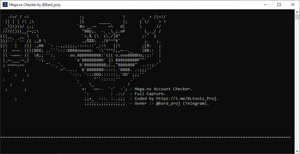 _Mega.nz Checker by BardProj_ is an efficient and high-performance tool designed for verifying Mega.nz account credentials quickly and accurately. Perfect for pentesting and educational purposes, this checker separates premium accounts from regular ones, ensuring a seamless and organized experience. Featuring a user-friendly interface, it supports the use of multiple bots (recommended 10 for optimal performance) and automatically processes combo lists to validate accounts. Once the check is complete, the tool closes automatically, saving time and effort. Developed with precision by BardProj, this tool is a must-have for those exploring account verification methods in a controlled environment. Download now and unlock its full potential!