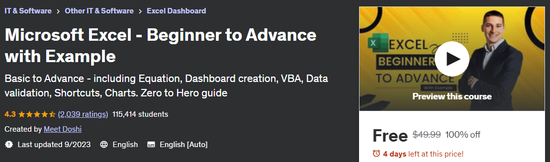 Basic to Advance - including Equation, Dashboard creation, VBA, Data validation, Shortcuts, Charts. Zero to Hero guide