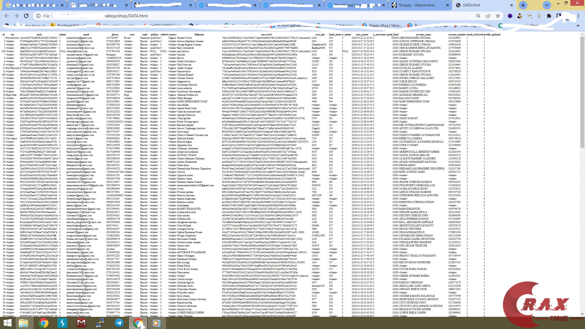 idcityhashadminemailphonestaterankpubkeysubbedcountryfullnamepassworduser_pinbank_nameis_onlinedate_joinedis_merchantspend_limitaccount_nameaccount_numberemail_activatedprofile_updated