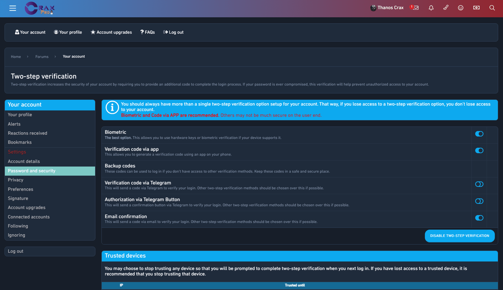 [NEW] 2FA Methods - Biometric/Telegram (1 Viewer)