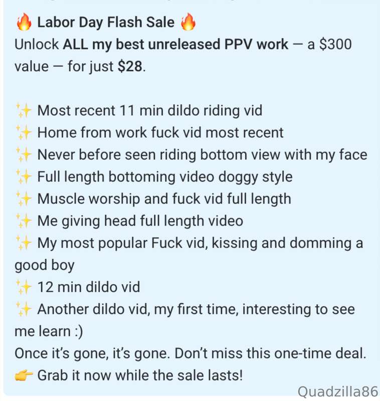 | Onlyfans: | https://onlyfans.com/quadzilla86 |