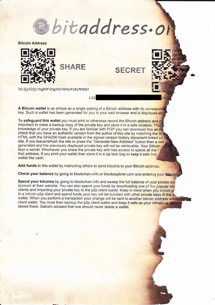 Paper wallet, 3.31 BTC burned.