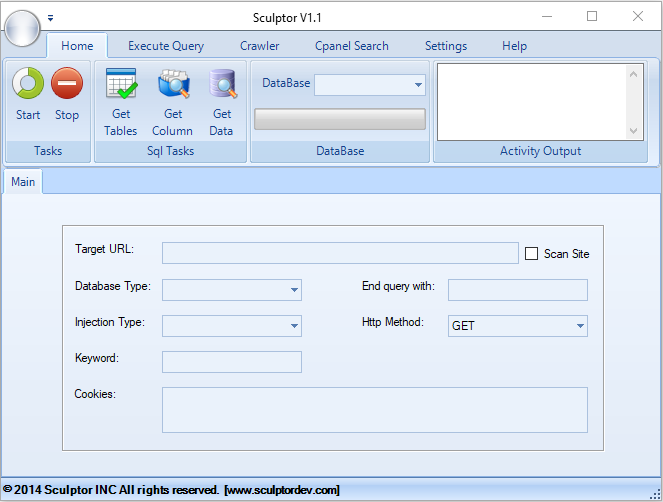 Sculptor v1.1 is a full-featured SQL exploitation framework built for deep interaction with vulnerable web applications. It combines scanning, crawling, query execution, and database extraction into a single streamlined interface, allowing fast transitions from target discovery to structured data access. With dedicated panels for injection setup, HTTP method control, and live activity output, Sculptor keeps everything tight, fast, and centralized.