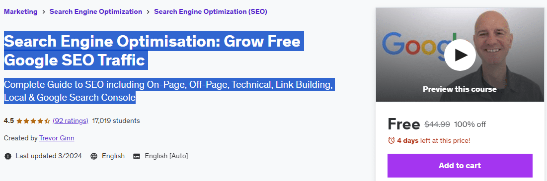 Search Engine Optimisation: Grow Free Google SEO Traffic (1 Viewer)