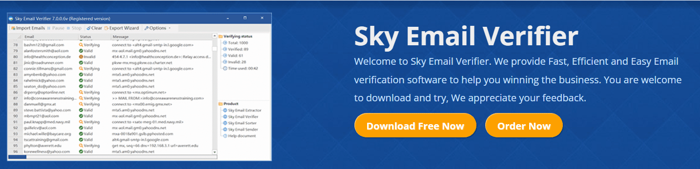 The software will automatically adjust the number of threads according to the network situation, to maximize the use of network resources.Real-time display email verification status