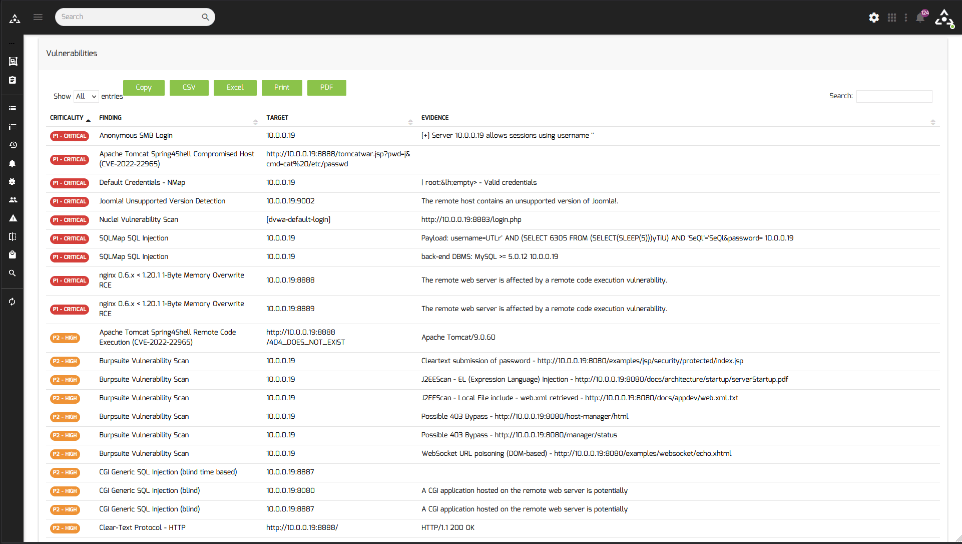 Export vulnerability reports in CSV, XLS or PDF format for your entire attack surface.