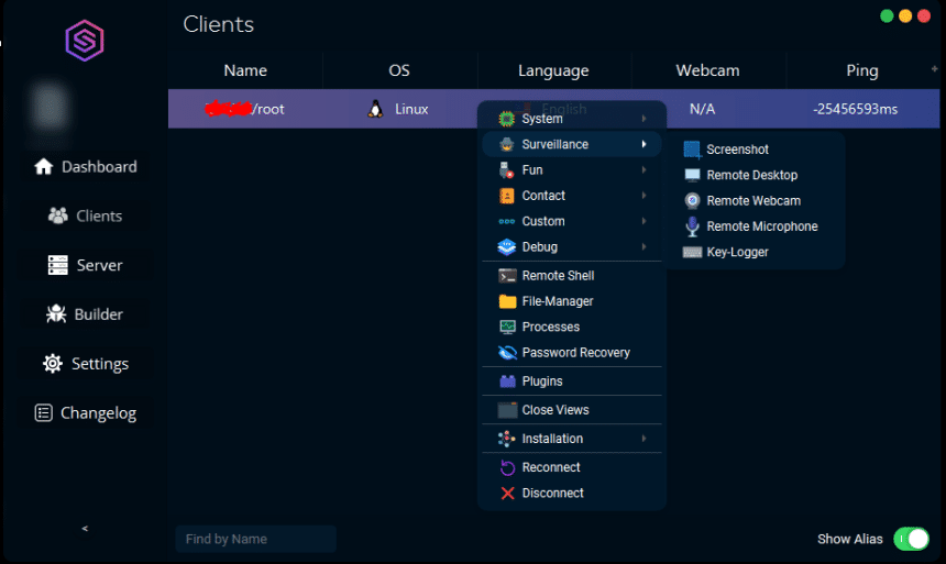 - Update Client: Update the victim's payload to the latest version.