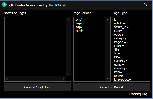 SQLi Dorks Generator by N3RoX (1 Viewer)