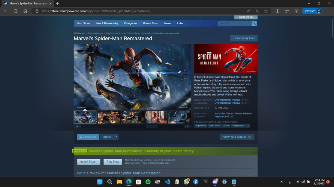 Mail Brute Steam Account #1 - SpiderMan (1 Viewer)