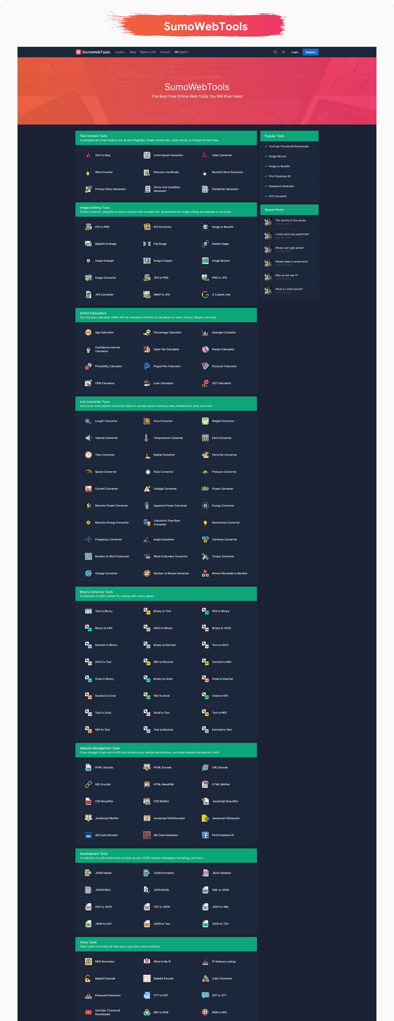 Below are the tools that the SumoWebTools script supports, helping you to create a beautiful website and full of popular web tools, see what you missed.