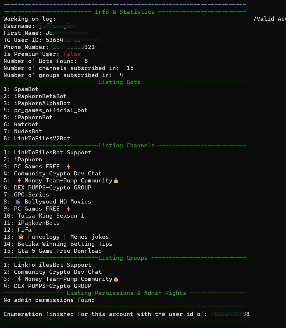 Enumeration finished for this account with the user id of: 896673232