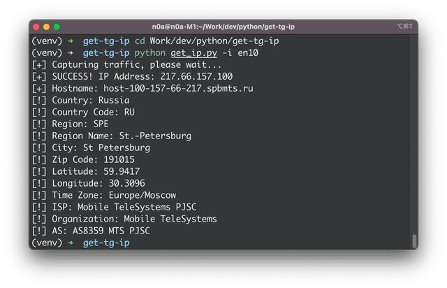 This script is intended to be used to determine the IP address of the interlocutor in the telegram messenger. You must have tshark installed to use it.