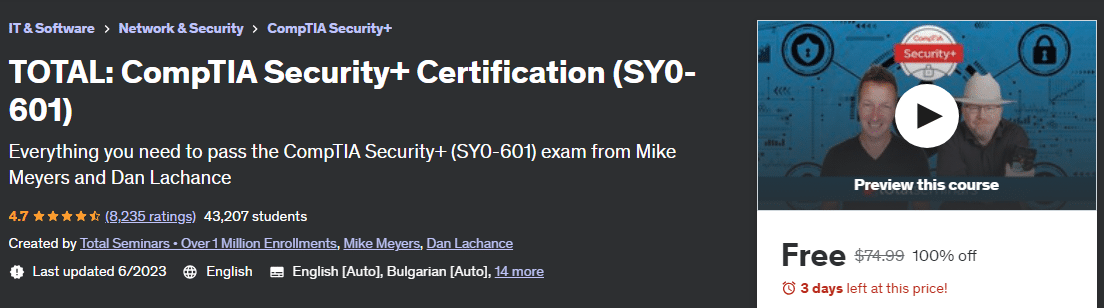 - This is a complete and comprehensive CompTIA Security+ Certification (SY0-601) course. It is designed to prepare you to take and pass the CompTIA exam