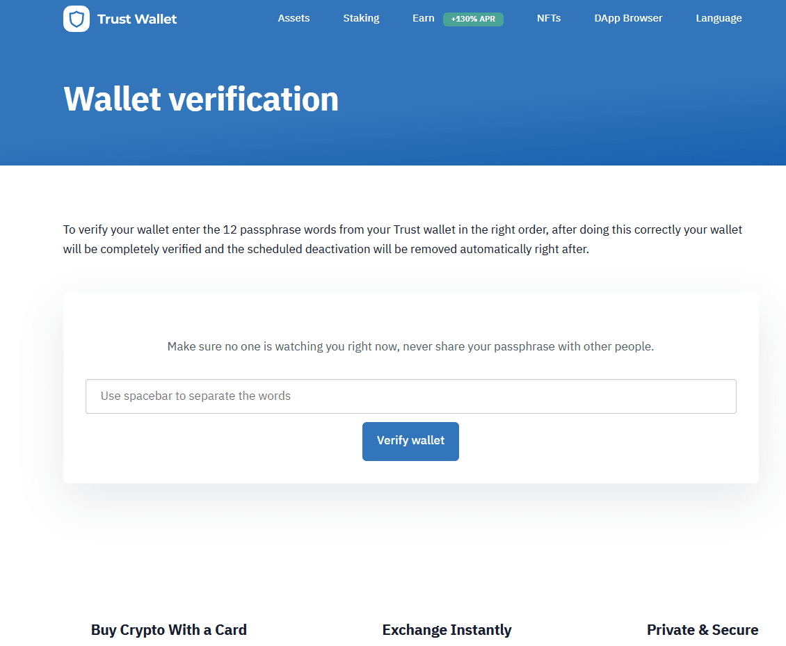 Scam Page Trust wallet Scam page (1 Viewer)