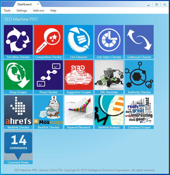 - SEO Machine Pro / Backlink Shark / Backlink Topia Pro / Backlink Profit Monster — backlink discovery, validation, and ranking-impact measurement utilities.