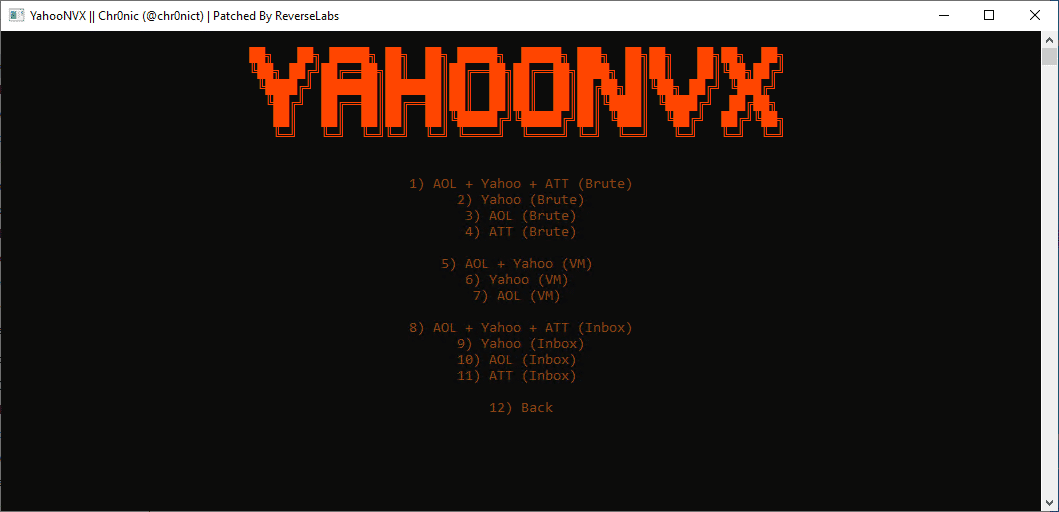 AOL + Yahoo + ATT (Brute), Yahoo (Brute), AOL (Brute), ATT (Brute), AOL + Yahoo (VM), Yahoo (VM), AOL (VM), AOL + Yahoo + ATT (Inbox), Yahoo (Inbox), Yahoo (Inbox), Yahoo (Inbox)!